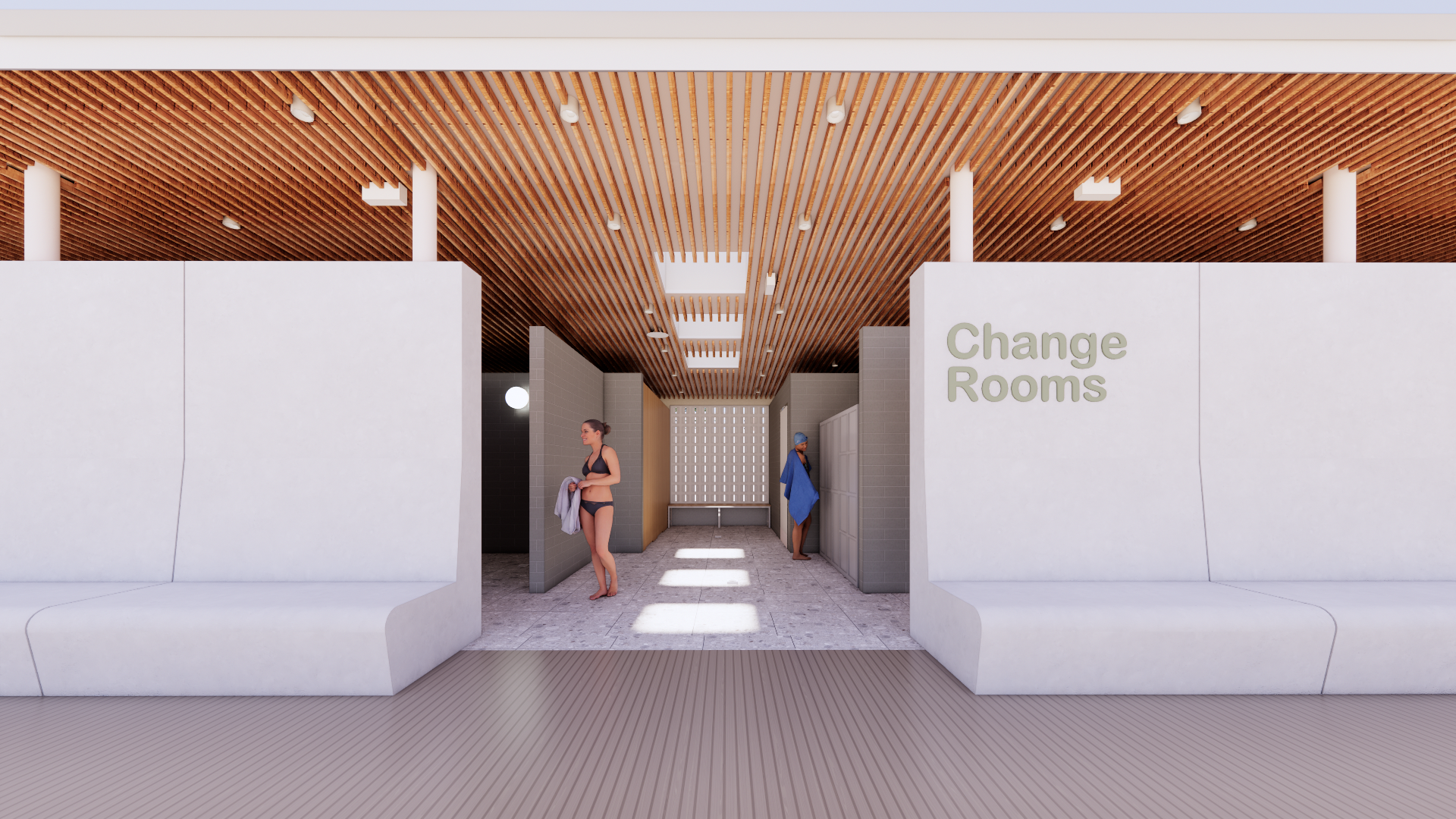 Artist's impression of new change roomsBuilders are now on site at Aquarena, with early works underway to prepare for the upcoming Outdoor Redevelopment. Over the coming weeks, the site will be readied for major works to begin.This exciting upgrade will transform Aquarena’s outdoor areas into a more welcoming and accessible space for the community. Once complete, the redevelopment will include a new 50‑metre outdoor pool with ramp access and a moveable swim wall, new change rooms, additional shade and enhanced spaces for families, schools and clubs.