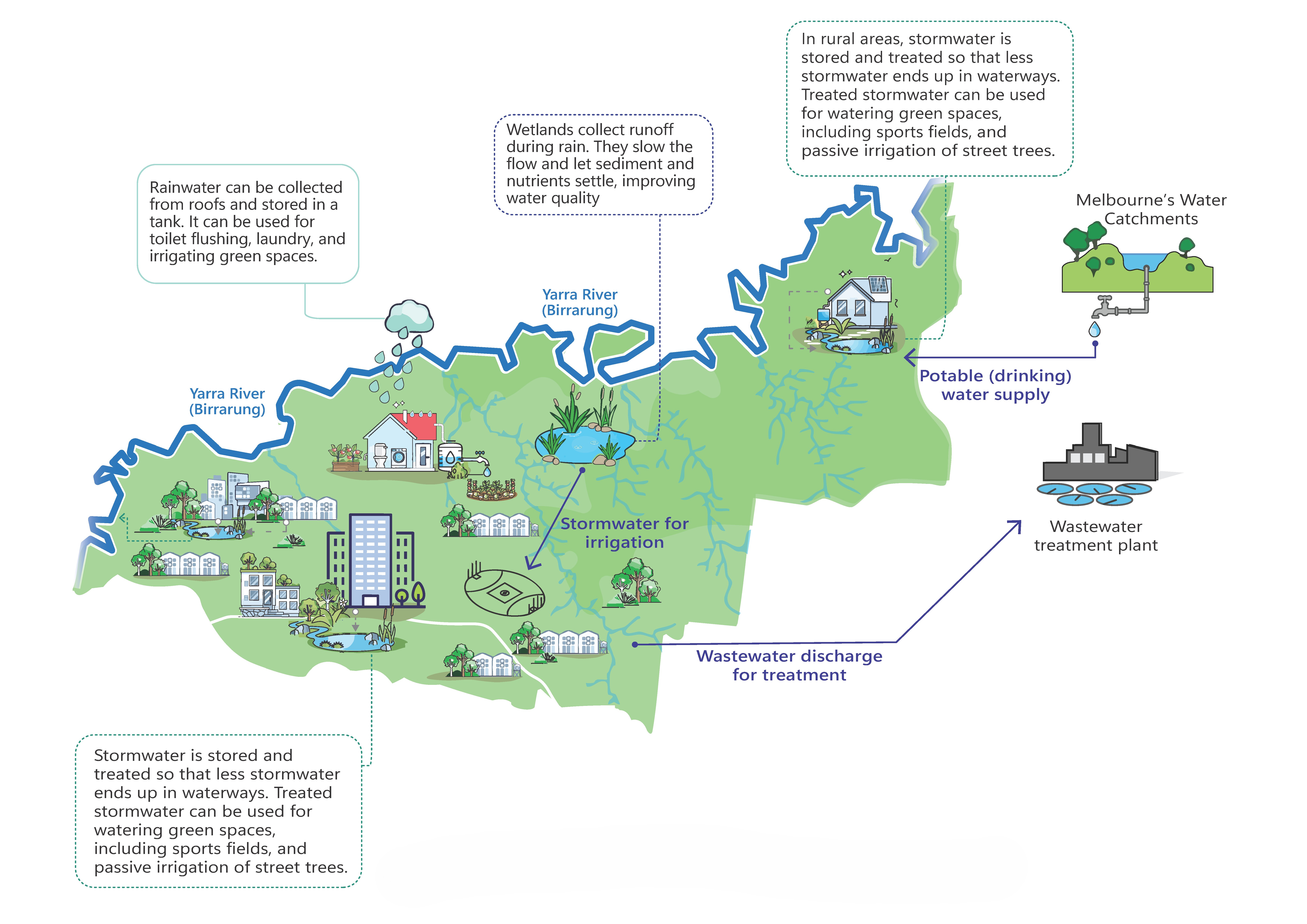 This collaborative approach allows us to identify and deliver greater value water cycle initiatives to improve the resilience and liveability of our city. In part, Integrated Water Management involves treating all water sources as resources, rather than as wastes for disposal.