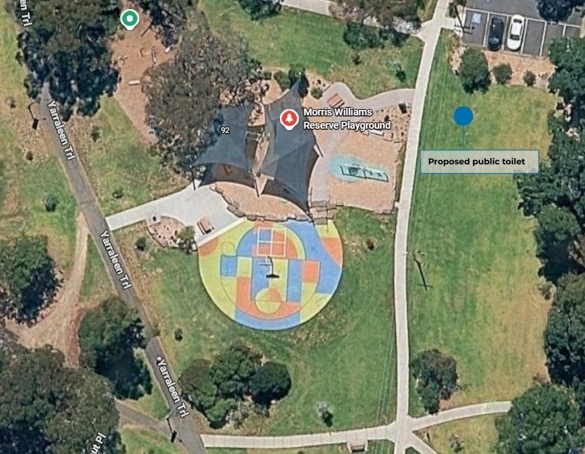 The Morris Williams Reserve toilets will be located close to the Egan Drive, Bulleen entrance.